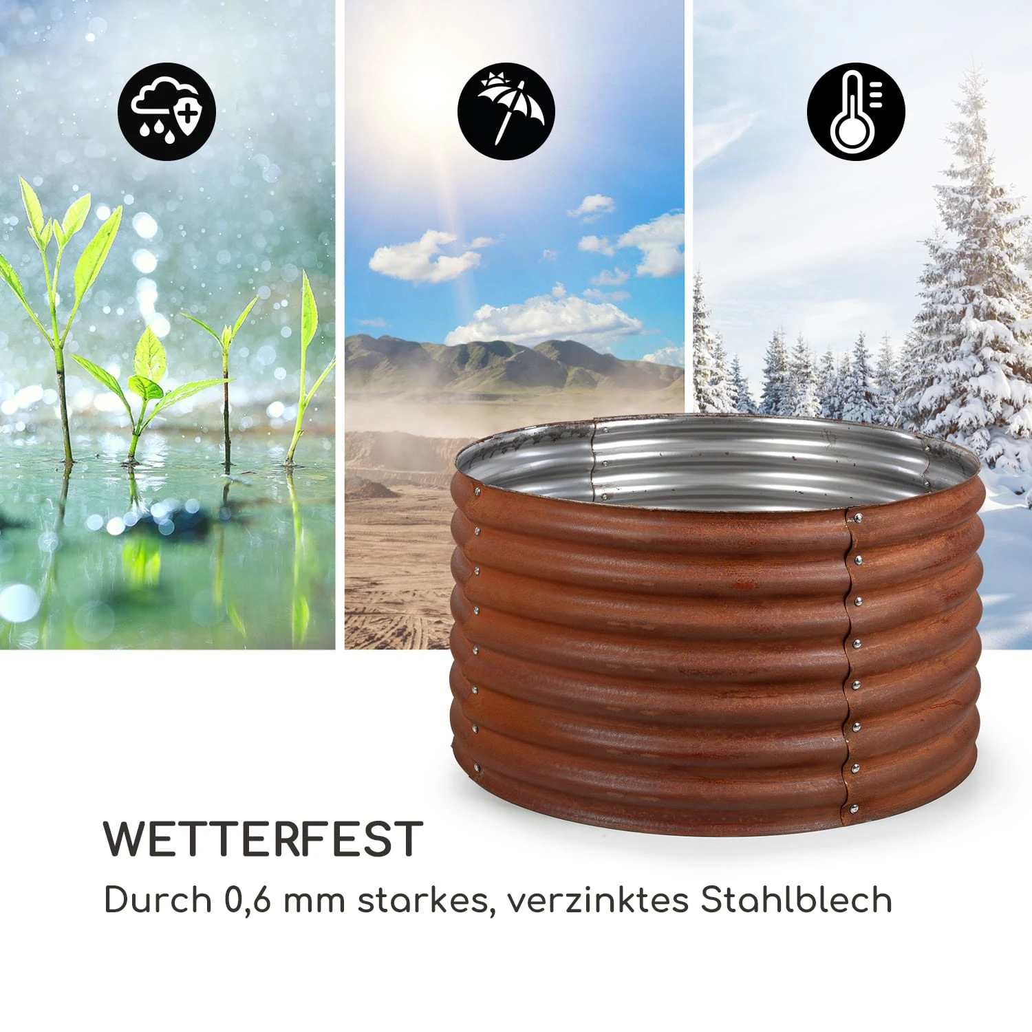 Denn saftige Tomaten, süße Erdbeeren, knackige Zucchini und aromatische Kräuter lassen sich dank idealer Wachstumsbedingungen spielend leicht heranziehen. Die stabile Rahmenkonstruktion des Gartenbeetes ist aus verzinktem Stahl-Wellblech sicher gegen Witterungseinflüsse geschützt. So trotzt das Rust Grow ganzjährig Wind und Wetter. Das edle Rost-Finish rundet das stimmige Gesamtbild gekonnt ab.