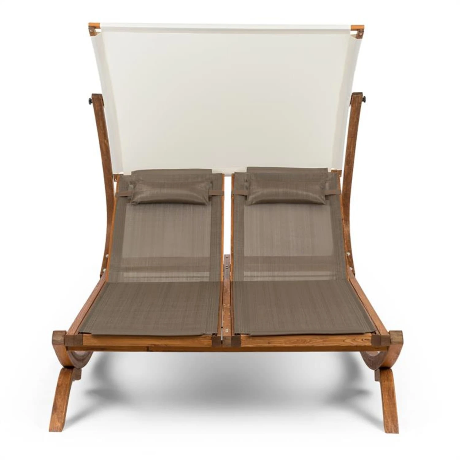 Gemäß des 5 Sterne Standards wartet die Blumfeldt Sonnenliege mit höchstem Luxus auf. Form, Farbe und Komfort bilden dabei einem harmonischem Dreiklang für verträumte Stunden im Grünen. Ein Farbkonzept in edlen Naturtönen sowie die moderne, abgerundete Form ergeben ein anmutiges Erscheinungsbild der Doppelliege. Wie auf einer bequemen Hängematte sorgt die gespannte Liegefläche aus atmungsaktiven Polyester-Gittergewebe für einen angenehm belüfteten Untergrund. Zusätzlich empfangen zwei Kopfkissen sanft die nach Erholung strebenden Seelen Bäumler. Die stabile Lärchenholz-Konstruktion geizt nicht mit Platz: eine extragroße Liegefläche lädt zum ausgiebigen Relaxen zu zweit ein und bietet auch großen Personen genug Raum, um bequem Entspannen zu können.
