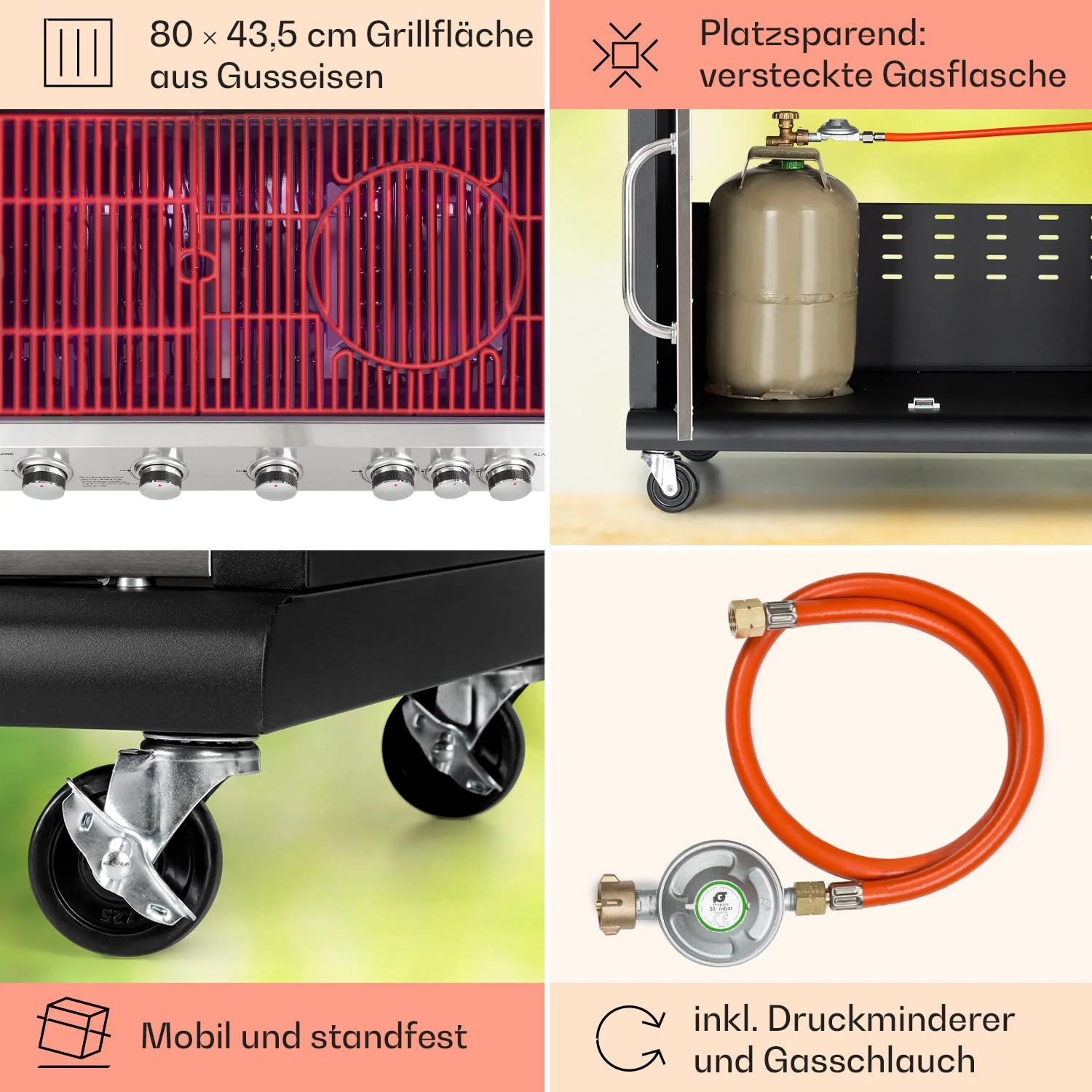 Die Grillsaison kann kommen! Der Klarstein Tomahawk Gasgrill mit 5 Brennern und einem Sideburner verspricht Grillgenüsse in höchster Qualität. Durch seine große Grillfläche, eine starke Hitzeleistung und das edle Design wird die Essenszubereitung zum reinsten Brutzelvergnügen.